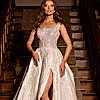 Bu yıl, klasik kalıpların dışına çıkıp cesur bir görünüm tercih eden gelinler için derin V yaka ve transparan detaylar oldukça popüler. Şeffaf tüllerle süslenen sırt ve kol detayları, sofistike ve etkileyici bir hava yaratıyor.