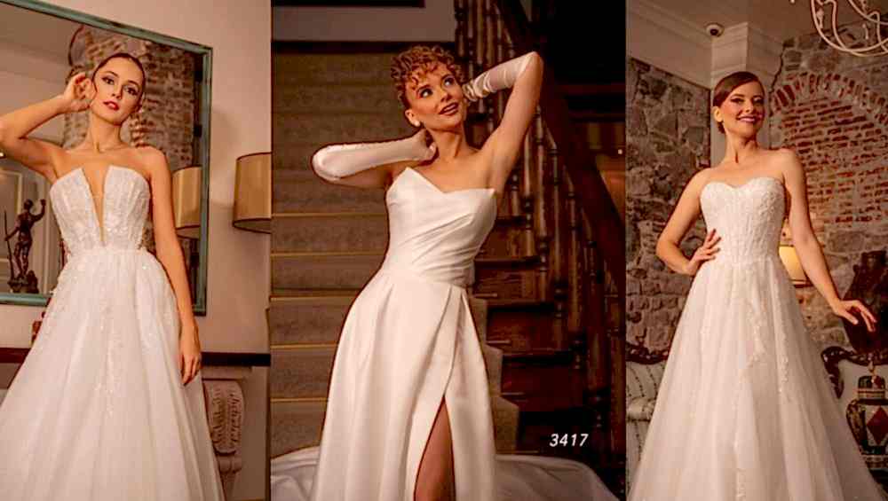 Helen model gelinliklerde bu yıl, minimal taş ve dantel detayları dikkat çekiyor. İnce kemerlerle tamamlanan modeller, bel hattını zarif bir şekilde vurguluyor. Altın ve gümüş detaylarla süslenen bu gelinlikler, düğün gününüzde zamansız bir şıklık sunar.